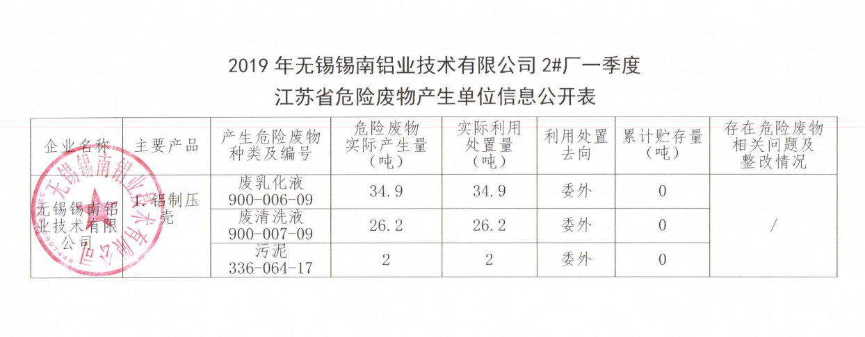 江蘇省危險(xiǎn)廢物產(chǎn)生單位信息公開(kāi)表(一季度)